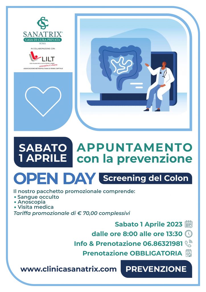 La Clinica Sanatrix promuove per Sabato 1 Marzo 2025 l’Open Day di Screening del Colon.