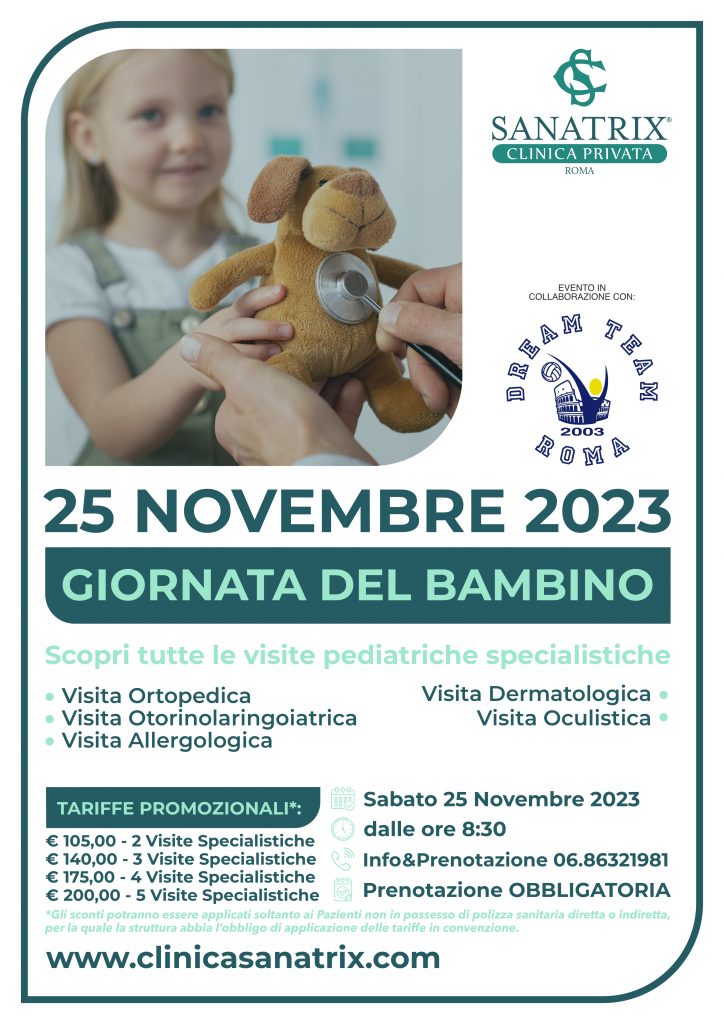 In occasione della Giornata Mondiale dei Diritti del Bambino riconosciuti dal 1924 nella Dichiarazione dei Diritti del Fanciullo, che prevede e riconosce il Diritto alla Salute, la Clinica Sanatrix anche quest’anno ha organizzato una giornata dedicata con le nostre Visite Specialistiche.